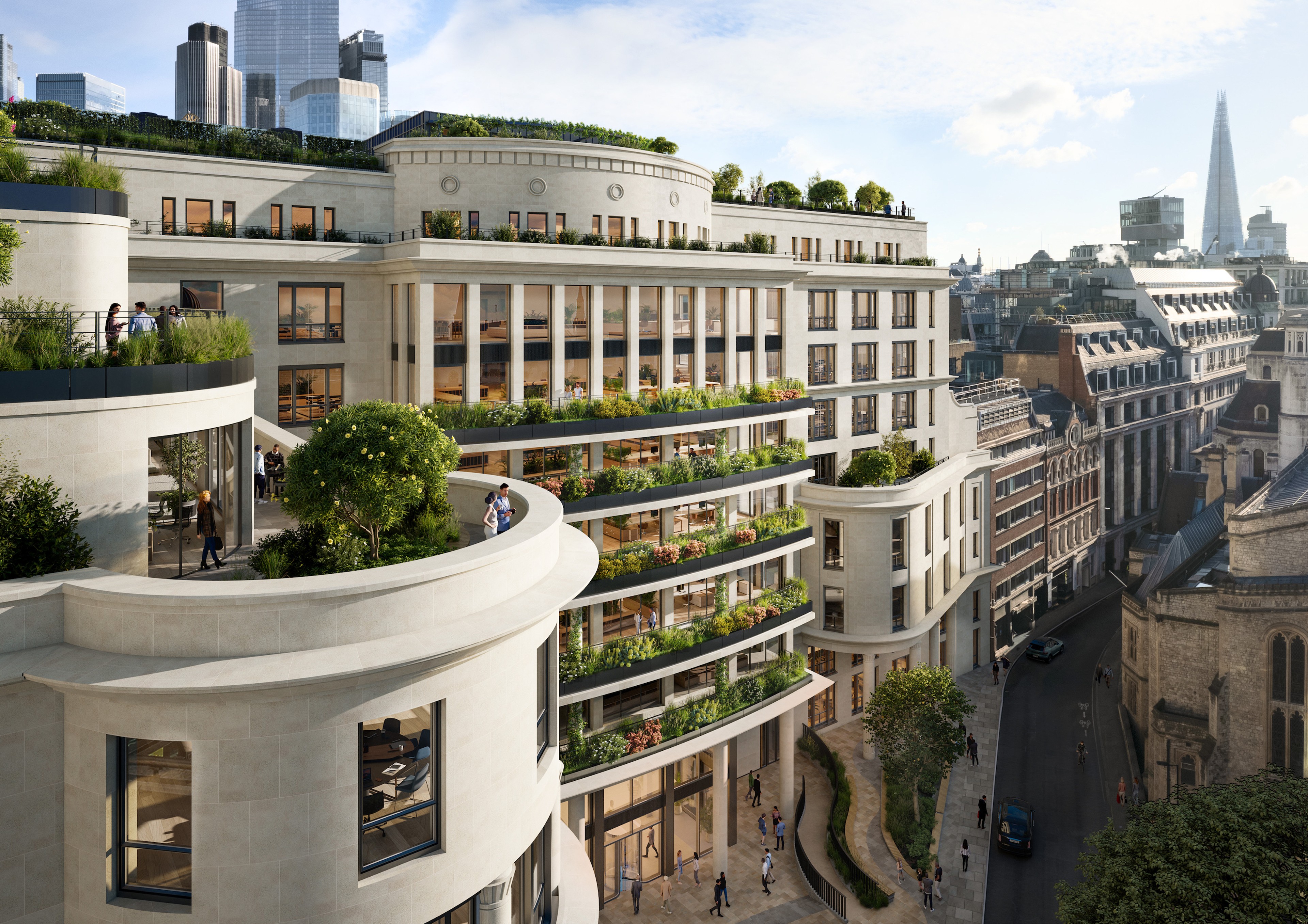 The renovated building features over 20,000 sq ft of external terraces, providing essential urban greening, beautiful biodiversity, and generous outdoor space on the majority of upper floors. The development achieved net zero carbon in both construction and operation thanks to an ambitious reuse and retention strategy, which preserved 98% of the existing structure. All-electric and fuelled by 100% green power, this building sets a new standard for sustainability in the City of London.